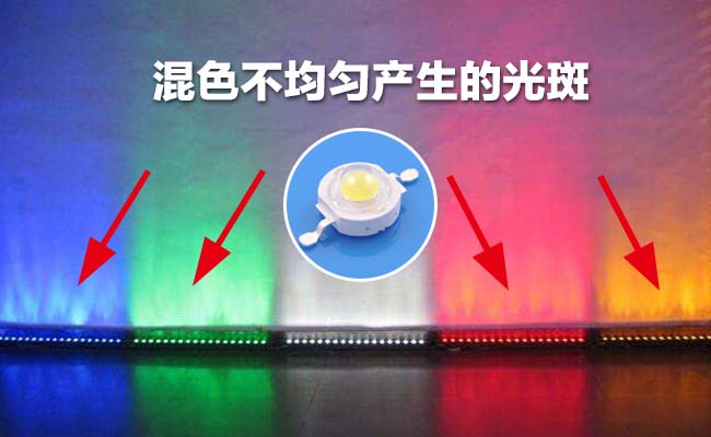 瀏覽:-洗墻燈在各大城市建筑亮化中幾乎成為了工程必備燈具,而大功率洗墻燈也成為了眾多客戶的追捧,經(jīng)常做亮化工程的朋友們都知道,過去的七彩大功率洗墻燈混色時總是會出現(xiàn)不同和度的光斑,不懂什么叫:“光斑”的朋友以下我用一張圖片來說明。
