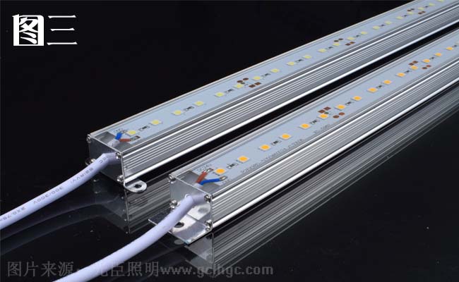 (三)堵頭出線:堵頭出線是從線條燈兩端堵頭片中間開一個(gè)出線孔,安裝非常方便。堵頭出線做不到無(wú)縫連接,美觀性相對(duì)于底部出線而言略為遜色。如圖三所示。