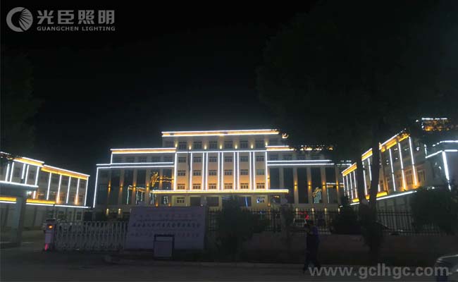 本次市政亮化項(xiàng)目選用了光臣照明3231鋁面蓋線條燈作為建筑輪廓勾畫,配套5030大功率洗墻燈以及雙向壁燈做了整體的外墻亮化。