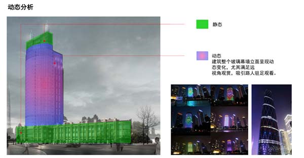 為打造一個(gè)動(dòng)靜皆宜的威海國亭大廈,設(shè)計(jì)師把亮化方案分為幾個(gè)部份,玻璃幕墻立面呈現(xiàn)動(dòng)態(tài)變化,尤其滿足遠(yuǎn)視角觀賞,吸引路人駐足觀看的效果。