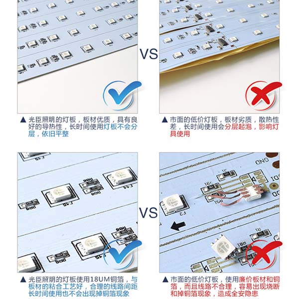 針對PCB板材的材質(zhì)來分析,PCB板也有分很多種質(zhì)量層次,市面上大部份廉價(jià)的線條燈選用的是二次料的PCB板材,這種板材在受熱后容易分層、銅箔太薄容易掉、粘合性不好銅箔層和PCB板層容易分開,更不用說線路穩(wěn)定性如何,板材都這樣還指望線路是穩(wěn)定的嗎?別開玩笑了,大家都很忙!大多數(shù)便宜的線條燈它沒有經(jīng)過合理的線路布局和檢驗(yàn)測試去測評它的可靠性和穩(wěn)定性。而正規(guī)的LED線條燈廠家所生產(chǎn)出來的產(chǎn)品肯定會(huì)做到這一點(diǎn)才能在市面上銷售。