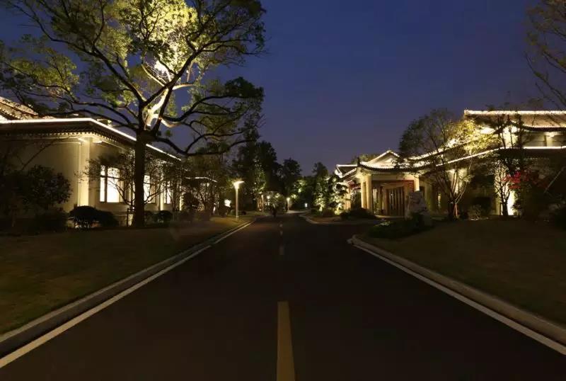 山居不求面面俱到,抓住特點進(jìn)行刻畫。通過精細(xì)化的燈光設(shè)計更多地強調(diào)精細(xì)美。重點強調(diào)門廳、山墻、屋檐翼角、屋脊。