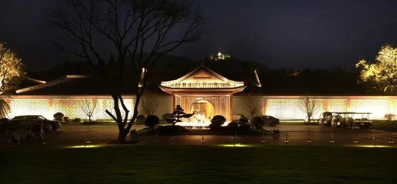 景觀照明結(jié)合人類的心理特征,接下來將從“外圍——入口——內(nèi)部”三大元素解讀西湖國賓館的夜景照明。